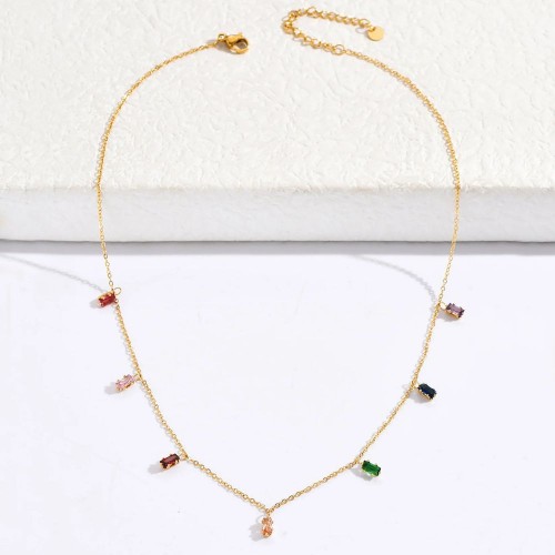 Introducing our Multicoloured Rhinestone Stainless Steel Necklace, a stunning piece that combines vibrant colors with durable elegance. Crafted with high-quality stainless steel, this necklace boasts both style and longevity. The centerpiece of this necklace is the array of multicoloured rhinestones, meticulously set to create a dazzling display of brilliance and sparkle. The combination of vibrant hues adds a playful and eye-catching element to your ensemble. With an adjustable chain length, it can be customized to suit your desired neckline. Whether you're attending a special occasion or simply want to make a fashion statement, our Multicoloured Rhinestone Stainless Steel Necklace is the perfect choice.